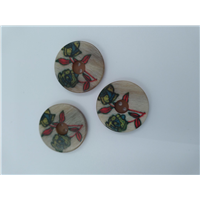 Button 1129a 24l Natural with Red Flower