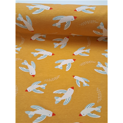 Fabric Jersey Knit Mustard Birds