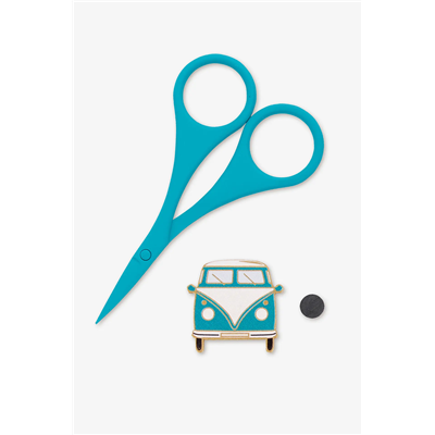 This scissor and needle minder set makes a lovely gift for the keen stitcher in your life or is a handy addition to your own craft stash. It includes a pair of 3mm thick stainless steel scissors and a campervan-shaped needle minder, which helps keep your needle safely in place while you take a break from stitching.