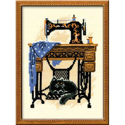 Riolis Cross Stitch 857 Cat with Sewing Machine