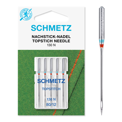 The SCHMETZ Topstitch needle has an elongated eye providing less stress on the thread as it passes through the eye. The Topstitch needle is useful for sewing with metallic, heavy, multiple and even poor-quality threads. The Topstitch needle has a slightly rounded point. Achieve perfectly straight and even stitches when using a straight stitch needle plate. A popular needle choice for machine embroidery.