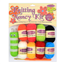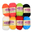 Contains 8 balls of 10g acrylic yarn in assorted colours, the Knitting Nancy tool and instructions.
