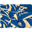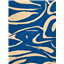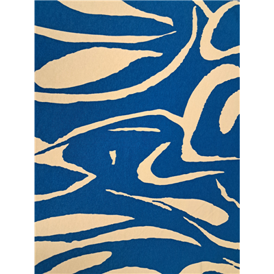 Blue background with white swirls, printed design
