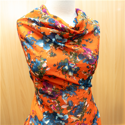 Fabric Cotton Voile Orange Floral