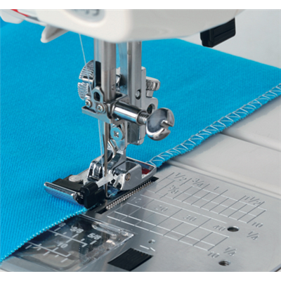 To be used with stitches that display Foot 'C' and enables you to overcast over the edge of the fabric without it curling under.
