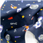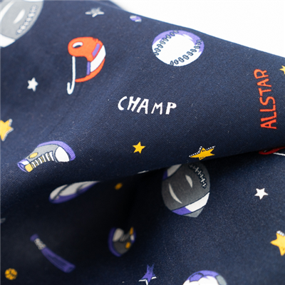 Printed stretch drill, navy with sports theme design.