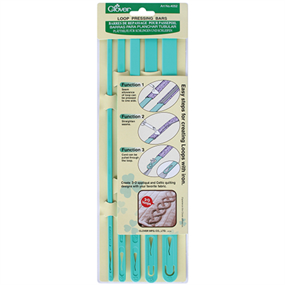 Package includes 5 sizes: 6mm, 9mm, 12mm, 15mm and 18mm. Provides quick and easy steps for pressing loops with an iron.