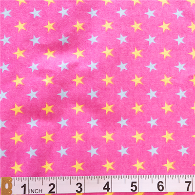 Yellow and blue stars printed on a bright pink background