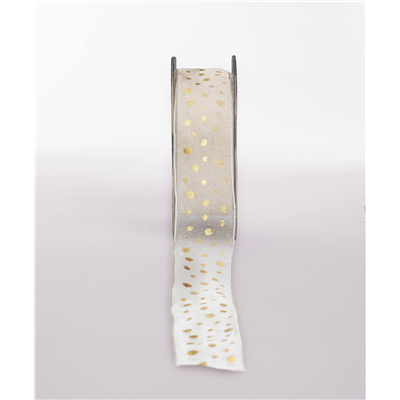 Ribbon Organza Ivory Gold Dot