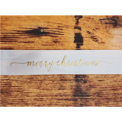 Ribbon Merry Christmas White Gold 25mm