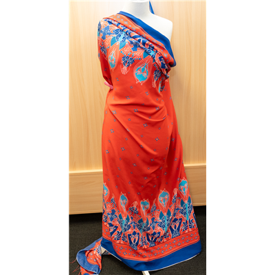 Bordered print, coral and blue