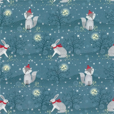 Christmas Winter Moonlight Hare and Fox