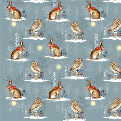 Christmas Winter Moon Owl Hare