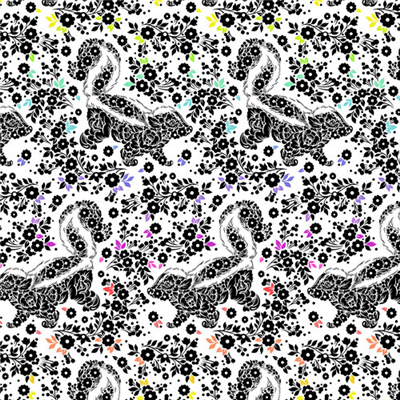 Tula Pink Linework Black White Skunks Floral