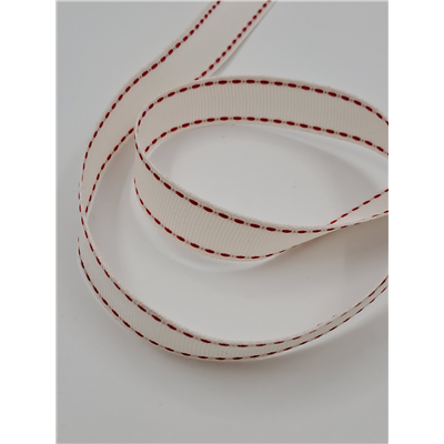 Grosgrain Ivory Red Stitch 16mm