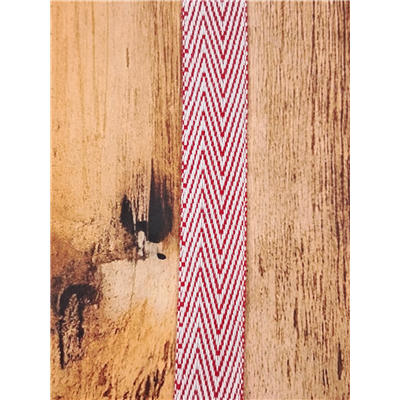 Ribbon Herringbone Red Wht 15mm