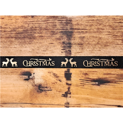 Ribbon Merry Christmas Black Gold 16mm