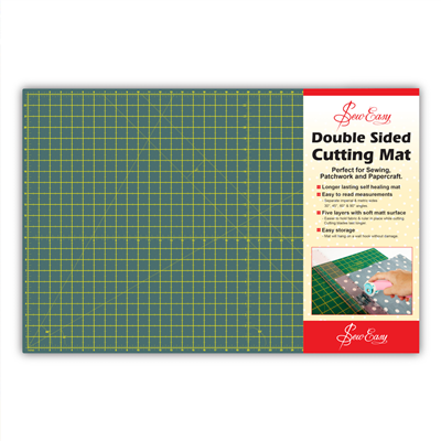 Sew Easy & Double Sided Cutting Mat marked with inches on one side and cm on the other side of the mat. \