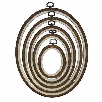 Nurge Flexi Hoops are a superb and quick way to attach your embroidery, cross-stitch or needlework fabric. They hold the tension really well. With a stretchy rubberised wood-grained outer, the Nurge Flexihoop Picture frames are a visually attractive way to display your work.