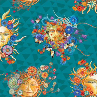 Let it glow! Artist David Galchutts distinctive and fantastic artwork comes to life in this vibrant collection featuring magnificent solar motifs and bold, modern geometric prints you just have to see!