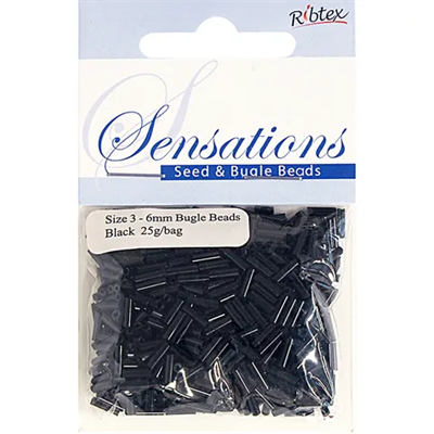 Beads Bugle Glass 6mm Black A 49