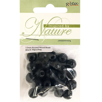 Bead Wood Round 12mm Black
