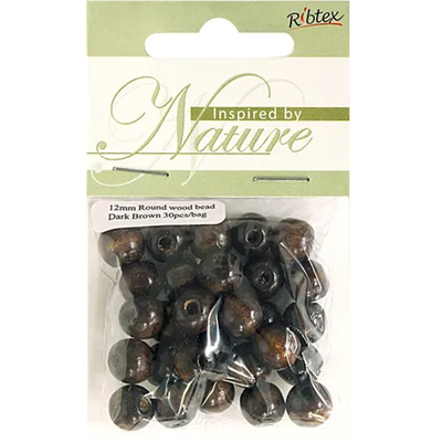 Bead Wood Round 12mm DK Brown