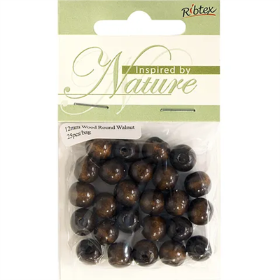 Bead Wood Round 12mm Walnut