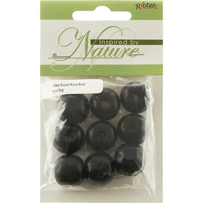 Bead Wood Round 18mm Black