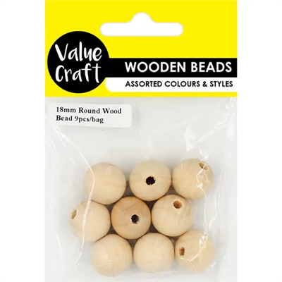 Bead Wood Round 18mm Nat VC
