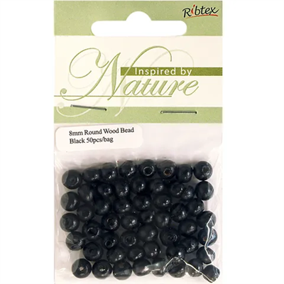 Bead Wood Round 8mm Black