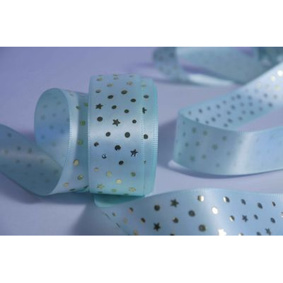Ribbon Starry Night Mint Gold 25mm