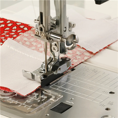 A popular foot with patchworkers for that essential 1/4 inch seam. The guide on the foot enables you to sew a perfect 1/4 inch seam every time. The guide can also be used wherever a 1/4 inch seam is called for but the markings on the needle plate cannot be used, such as when completing a flat-felled seam.