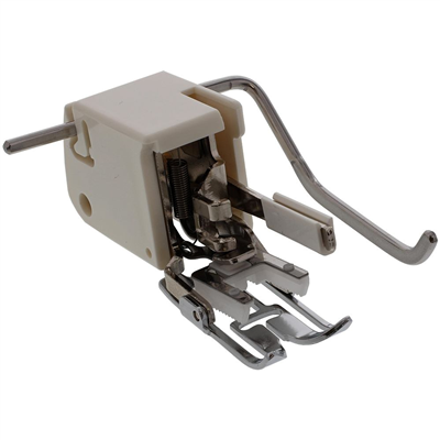 The Even Feed Foot, sometimes referred to as the walking foot, is designed with a set of feed dogs that allow the fabric to feed without shirting and eliminate the problem of the underlayer of fabric coming up short. The Even Feed Foot is also great for topstitching, which can be spoiled due to the irregularity of stitching. This is often caused by the bulk created with the seam allowance, especially around collars and sleeves. Using the walking foot for topstitching will eliminate this problem and give perfect stitching every time.