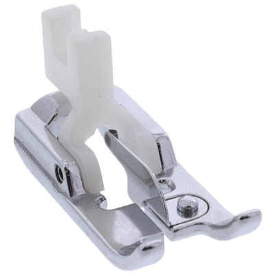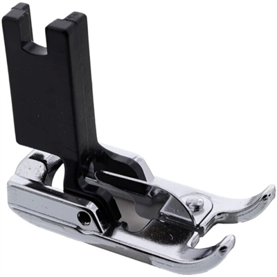 The fringing foot is designed for fagoting and sewing thread fringe. This decorative touch is especially effective in applique work. The foot has a small divider in it so that when you make a wide zig-zag stitch, you will wind up with a very large loop. Then simply cut the loop close to one side of the stitches. whichever side you want the fringe to be free on, and you’ll have made your own thread fringe!
