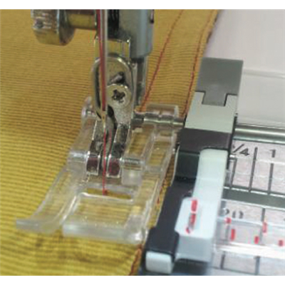 Edge stitching could not get any easier with the Sliding Guide Foot! You can adjust the flange to sit up to a full inch away from the edge of the foot in seconds and create perfectly straight hems every time. The guide can be moved freely and easily by just lifting the lever in the back of the foot, instead of having to mess with an annoying screw. The clear markings make certain you know exactly where you want your foot to go.
