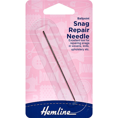 The Snag repair needle is an excellent tool for repairing snags in wovens and knitwear. The special file like tip is designed to repair snagged threads by pulling them through to the back of the fabric so that they are no longer visible. Snags in even the finest materials are now to easy to repair.