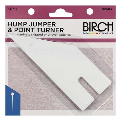 For use as a Hump Jumper - Put the Hump Jumper under the presser foot as you approach the large side seam on a pair of jeans. This levels the foot as you sew through all those layers. As you get through the "fat" part, set the needle into the fabric (needle down position) and switch the Hump Jumper to the front of the needle. Continue sewing until you get level again, in a "flatter" part of the hem.