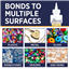 This permanent fabric glue is quick setting, making it great for working with hard-to-hold accents, and dries clear and flexible on both washable and non-washable fabrics.