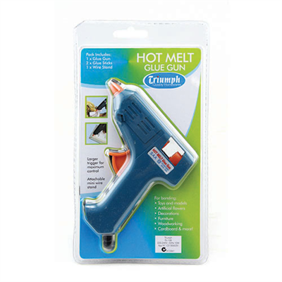 This Triumph Hot Melt Mini Glue Gun operates at high temperatures for a stronger, more robust glue bond. The small size is ideal for working on all sorts of projects from scrapbooking to card making and home decoration designs to handmade accessories.
