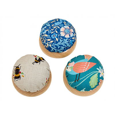 Pin Cushion Hobby Gift Assorted Bee, Bird or Floral Woodblock